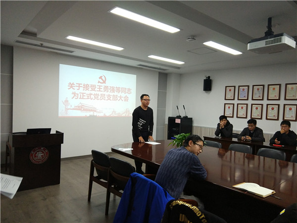 隨后,黨支部分別對(duì)周耀東、王勇強(qiáng)、楊漢敏三位同學(xué)的轉(zhuǎn)正問(wèn)題展開討論,三位預(yù)備黨員分別匯報(bào)了預(yù)備期以來(lái)自己在思想、理論學(xué)習(xí)、實(shí)踐等方面取得的成果。結(jié)合考察人對(duì)三位同學(xué)的考察意見,與會(huì)正式黨員進(jìn)行無(wú)記名投票表決。根據(jù)投票結(jié)果,同意三位同學(xué)轉(zhuǎn)為中共正式黨員。