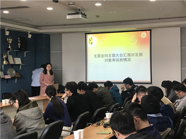隨后,本期發(fā)展對象儲鵬同學(xué)就自身工作學(xué)習(xí)情況、入黨動機(jī)、黨性培養(yǎng)等方面,進(jìn)行了簡單的自我介紹,最終通過投票,接收為預(yù)備黨員。最后,支部書記賈雪姣進(jìn)行了本次黨支部生活會的總結(jié),對黨支部后續(xù)活動進(jìn)行介紹。組織委員閆鴻志也進(jìn)一步介紹了黨支部考核的相關(guān)事宜。