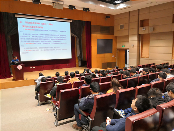 董哲介紹了學(xué)習(xí)《中國共產(chǎn)黨支部工作條例(試行)》的背景與意義,帶領(lǐng)大家詳細解讀了條例中的各項內(nèi)容,并組織支部黨員在會上進行了學(xué)習(xí)心得分享。隨后,他對2018年度支部工作進行了回顧和總結(jié)。細數(shù)這一年來,支部舉辦了多次專題教育活動;和上海汽輪機廠設(shè)計聯(lián)合黨支部的“共行計劃”也不斷推進,通過共同組織黨支部生活會、暑期參觀實習(xí)等方式,讓同學(xué)們對于行業(yè)發(fā)展有了更全面的了解;重溫紅色歷程,去多個教育基地的參觀學(xué)習(xí)也成為了大家的難忘回憶。同學(xué)們在這些活動中相互熟悉,共同進步。希望通過大家的不懈努力,將黨支部打造成一個團結(jié)友愛、積極先上的基層組織。
