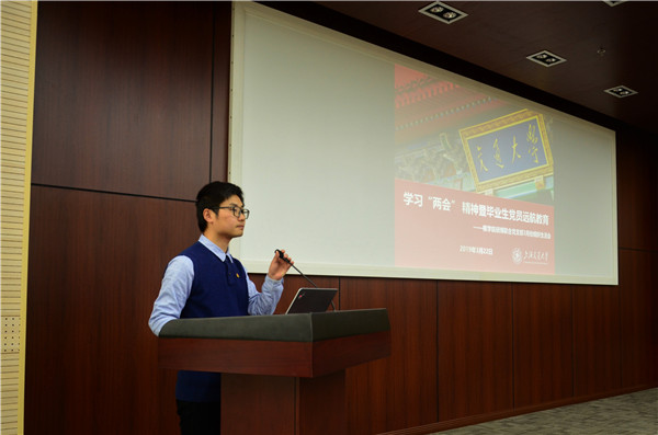 在優(yōu)秀黨員分享環(huán)節(jié),2015級(jí)博士研究生、2018年國(guó)家獎(jiǎng)學(xué)金獲得者許銳從參與項(xiàng)目、科研歷程和論文、專(zhuān)利撰寫(xiě)等方面分享了自己的心得體會(huì)。2016級(jí)碩士研究生杜政瑀選擇了前往中國(guó)核動(dòng)力研究設(shè)計(jì)院就業(yè),介紹了其就職單位,并分享了自己的求職過(guò)程。2015級(jí)博士研究生胡振梟就自己為什么選擇成為選調(diào)生、如何準(zhǔn)備選調(diào)生考試和面試等跟同學(xué)們做了交流。