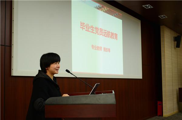 在畢業(yè)生黨員遠(yuǎn)航教育環(huán)節(jié),余天佐和熊珍琴分別致辭。