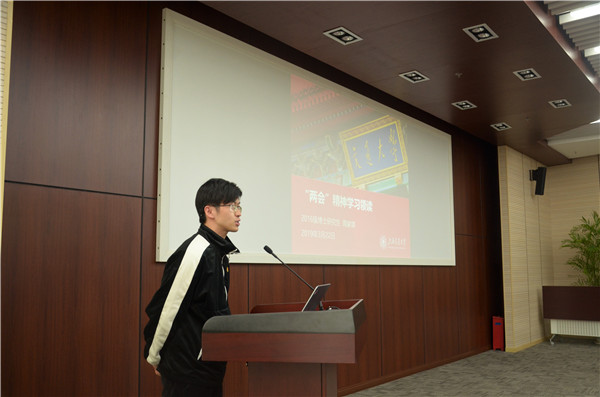 在學(xué)習(xí)“兩會(huì)”精神環(huán)節(jié),2016級(jí)博士研究生陶家琪結(jié)合自己的體會(huì)和感受,和同學(xué)一起學(xué)習(xí)今年“兩會(huì)”的重要內(nèi)容。陶家琪就今年“兩會(huì)”內(nèi)容,從全面依法治國(guó)、正風(fēng)反腐、社會(huì)保障、教育改革、健康中國(guó)、互聯(lián)網(wǎng)+政務(wù)服、住房制度、脫貧攻堅(jiān)、收入分配、生態(tài)環(huán)保等十個(gè)熱點(diǎn)內(nèi)容進(jìn)行了深入淺出的解讀,并針對(duì)我們關(guān)系密切的上海科改25條進(jìn)行了介紹。陶家琪的分享不僅向同學(xué)們傳達(dá)了“兩會(huì)”精神,更讓我們認(rèn)識(shí)到貫徹落實(shí)“兩會(huì)”精神的重要意義。隨后,各位黨員進(jìn)行了學(xué)習(xí)“兩會(huì)”精神的交流討論,分享了自己的想法。