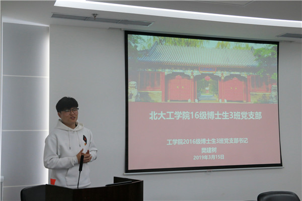 北京大學(xué)工學(xué)院16級博士生3班黨支部書記樊建樹就黨支部建設(shè)、思想政治工作、特色工作等三個方面介紹了黨支部工作情況。支部結(jié)合新時代下研究生的需求,以生動活潑的形式,完善黨建工作、創(chuàng)新會議文化、構(gòu)建支部品質(zhì)活動。活動相關(guān)報道登上北京大學(xué)主頁1次,新聞網(wǎng)2次,支部曾獲評北京大學(xué)先進(jìn)黨支部。該支部注重開展主題黨日和組織生活,強(qiáng)化理論學(xué)習(xí)頻次,提高黨員黨性修養(yǎng),他們每年組織學(xué)生黨支部工作匯報,現(xiàn)場接受黨員質(zhì)詢,形成了良好的批評與自我批評氛圍,他們以“STEM”普及教育為核心的理工科研究生黨支部系列志愿活動指引中小學(xué)生按照發(fā)現(xiàn)-假設(shè)-解釋-總結(jié)的探索式學(xué)習(xí)方法提升能力,形成了支部特色活動。
