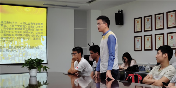 最后,同學們就今天的主題展開討論,大家仿佛像百年前覺醒的青年一樣,無比激動,踴躍發(fā)言。雷陽等同學更是結(jié)合當下中美貿(mào)易戰(zhàn)的現(xiàn)狀,深深的體會到自立自強的重要性。大家的發(fā)言充滿了活力,讓人感受到朝陽一般的力量,也體現(xiàn)出青年學子不忘初心、牢記使命,為實現(xiàn)中華民族偉大復興而奮斗的決心和信心!至此,本次組織生活會圓滿結(jié)束。