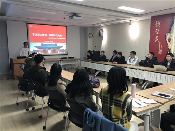 最后,王志永帶領(lǐng)大家回顧了“一二九”運(yùn)動事跡和歷史意義。回顧過去,是青年學(xué)生的愛國熱忱和奮不顧身的救國行動,激勵了一代又一代青年為振興中華而奮斗。展望未來,交大青年學(xué)子又該如何行動呢?就此,全體黨員展開了“牢記歷史使命,爭做時代先鋒”的主題討論。現(xiàn)場氣氛活躍,大家積極發(fā)言,其中謝濤同學(xué)的發(fā)言得到了大家的肯定。他結(jié)合自己在國外交流學(xué)習(xí)的經(jīng)歷,認(rèn)為黨在實(shí)踐中把馬克思主義基本原理同中國具體實(shí)際結(jié)合起來,在古老的東方大國建立起保證億萬人民當(dāng)家作主的新型國家制度,這是很了不起的事情,因此身為黨員必須保持制度自信;除此以外,作為在校學(xué)生,不僅要腳踏實(shí)地本著求實(shí)的科研態(tài)度先做好自己的本職工作,更要懷著一腔熱忱砥礪前行,奉獻(xiàn)祖國。