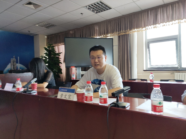 參觀結(jié)束后,總體設(shè)計部的領(lǐng)導(dǎo)與交大的師生們開展了交流座談會,出席活動的有人力處處長周東強(qiáng)、人力處副處長時光、熱控技術(shù)研究室書記黃磊、供配電技術(shù)研究室書記王林濤、2017屆研究生校友、結(jié)構(gòu)與機(jī)構(gòu)技術(shù)研究室主管設(shè)計師黃文宣。會議伊始,周東強(qiáng)介紹了總體設(shè)計部的情況。總體設(shè)計部是五院載人航天、空間科學(xué)與深空探測、太空態(tài)勢感知、空間安全與在軌維護(hù)領(lǐng)域業(yè)務(wù)的責(zé)任主體和系統(tǒng)總體單位,是五院總體專業(yè)技術(shù)發(fā)展的責(zé)任主體。徐德輝介紹了實踐團(tuán)一行的人員構(gòu)成及實踐目的。在職業(yè)方向的選擇上,黃磊給同學(xué)們提出了寶貴建議,方向要正、平臺要大、專業(yè)要硬。交大校友黃文宣分享了個人工作經(jīng)驗,他肯定了總體設(shè)計部的科研資金充足、崗位培養(yǎng)模式靈活多樣等優(yōu)點,歡迎交大的同學(xué)投身航天事業(yè)。