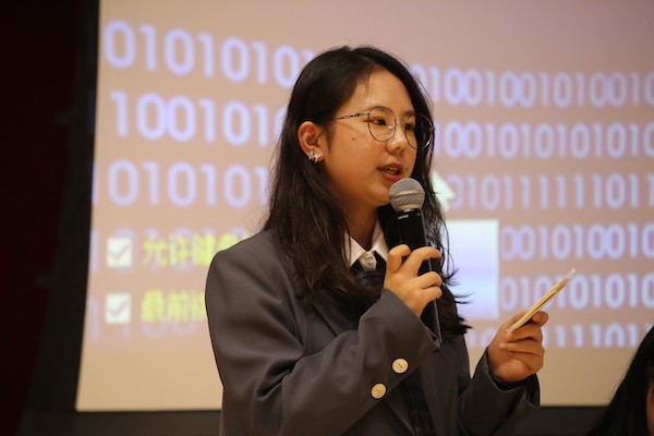 隨后,表演賽正式開始。來自學(xué)院辯論隊的正反雙方6名辯手圍繞“若人有死亡輪回,且不需要消除記憶,這是一件可喜/可悲的事情”的辯題展開激烈辯論。正方從攜帶記憶的輪回可以讓人體驗生活的更多可能性這一論點出發(fā),引用《三體》等著作中的內(nèi)容加以論證;反方則從輪回會導(dǎo)致社會思維固化、犯罪無法約束等角度進行反駁。雙方旁征博引、唇槍舌劍,表現(xiàn)了敏銳快速的思維和邏輯嚴(yán)謹(jǐn)?shù)乃急妫蛴^眾們充分展示了辯論的魅力。表演賽在熱烈的掌聲中落下帷幕。