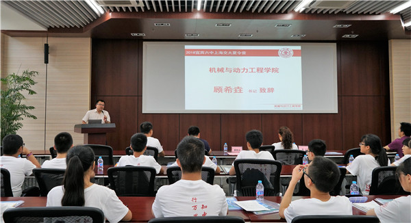顧希垚老師首先致辭。他對(duì)宜賓六中師生的到來(lái)表示熱烈歡迎,他希望同學(xué)們?cè)谶@次夏令營(yíng)中珍惜學(xué)習(xí)機(jī)會(huì),從中學(xué)習(xí)到實(shí)踐與創(chuàng)新的方法,鼓勵(lì)同學(xué)們要在心中埋下一顆種子,為自己的理想努力拼搏。接著他介紹了機(jī)械與動(dòng)力工程學(xué)院的科研成果、著名校友以及人才培養(yǎng)等多方面的情況。