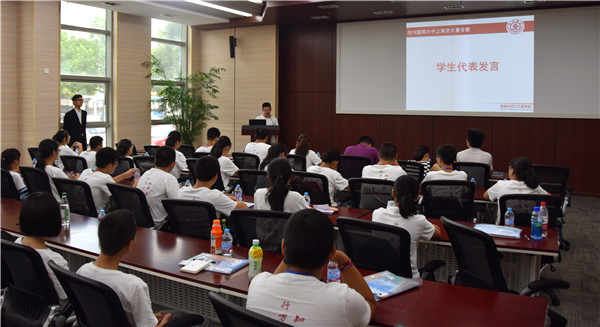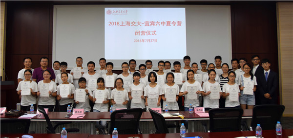 7月27日下午,上海交通大學(xué)-四川省宜賓市第六中學(xué)2018年暑期夏令營(yíng)閉營(yíng)儀式在機(jī)械與動(dòng)力工程學(xué)院振華會(huì)議室舉辦。機(jī)械與動(dòng)力工程學(xué)院黨委副書(shū)記顧希垚,學(xué)院本科生思政辦主任林秀娟,學(xué)院思政教師梁茂宗,四川省宜賓市第六中學(xué)副校長(zhǎng)熊華清和教師代表唐鵬、夏天以及宜賓六中29名學(xué)生出席了閉營(yíng)儀式。