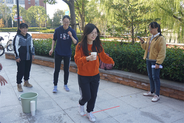 之后,選手通過(guò)解答線索,搜尋八個(gè)地點(diǎn)參與游戲,同時(shí)確定小組的行動(dòng)路線。解開(kāi)線索并順利到達(dá)游戲地點(diǎn)后,同學(xué)們積極分工合作,互相配合,順利完成了 “砥礪前行”、“四渡赤水”、“唱響中國(guó)”、“勇往直前”、“心有靈犀”、“不忘初心”、“扭轉(zhuǎn)乾坤”、“飛奪瀘定橋”等游戲。每項(xiàng)游戲之后,每支隊(duì)伍有一次答題機(jī)會(huì),題目包括黨史、黨章、中華民族傳統(tǒng)文化等,答對(duì)題目可獲得額外加分。