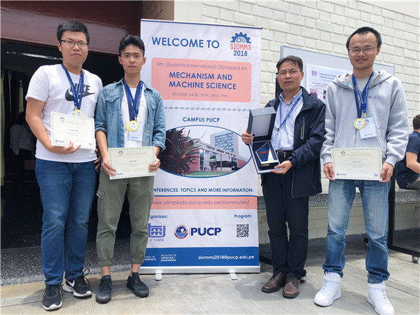 10月24日至26日,第四屆機(jī)械原理(機(jī)構(gòu)與機(jī)器科學(xué))國(guó)際奧林匹克競(jìng)賽(簡(jiǎn)稱SIOMMS 2018)在秘魯天主教大學(xué)(Pontifical Catholic University of Peru,PUCP)舉行。經(jīng)過激烈角逐,上海交通大學(xué)機(jī)械與動(dòng)力工程學(xué)院的馮苗、麥熙名、宋嘉誠(chéng),榮獲團(tuán)體冠軍和個(gè)人冠軍。本次競(jìng)賽由國(guó)際機(jī)構(gòu)與機(jī)器科學(xué)聯(lián)合會(huì)(簡(jiǎn)稱IFToMM)主辦,來自中國(guó)、美國(guó)、俄羅斯、德國(guó)、西班牙、日本、秘魯?shù)?個(gè)國(guó)家和地區(qū)的近20支代表隊(duì),近50名學(xué)生參賽。