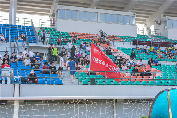 看臺上,機械與動力工程學院的觀眾們聲嘶力竭地為綠茵場上的英雄們加油。一波又一波的助威聲,無論場上球員得球、失球,進球、丟球,不離不棄。臺上臺下眾志成城,甚是感人。