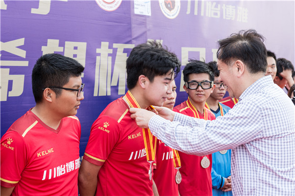 賽后,上海交通大學黨委書記姜斯憲為球員頒獎。