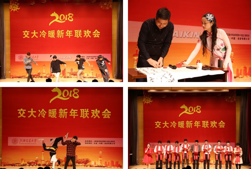 制冷所師生載歌載舞,共迎新年。525街舞協(xié)會的開場舞點(diǎn)燃了氣氛,伴著古箏彈奏《憶故人》,陳江平教授現(xiàn)場題字,展現(xiàn)了他的多才多藝。制冷學(xué)子們也毫不遜色,演唱了《成都》,表演了情景劇《交大好聲音》、相聲《說點(diǎn)文化的事兒》、鋼琴演奏及合唱《你的名字jingle bells》,盡顯青春風(fēng)采。大金公司的嘉賓也熱情參與,帶來了街舞表演《青春修煉手冊》,還與學(xué)院教師進(jìn)行了精彩的歌曲串燒,點(diǎn)燃了全場熱情。