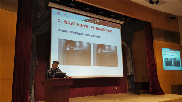 緊接著余天佐與大家一起觀看了校園交通事故案例。截止11月,我校2018年校內(nèi)共發(fā)生交通事故96起,發(fā)生原因主要有:隨意變道、通過路口不注意查看周邊情況、逆向行駛、雨天汽車視線被擋、操作失誤。這些事故的視頻觸目驚心,給同學(xué)們留下了深刻的印象,余天佐也叮囑大家注意出行安全,遵守交通規(guī)則。