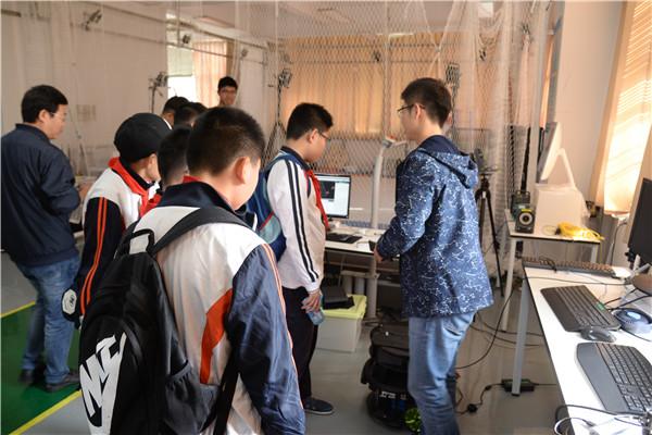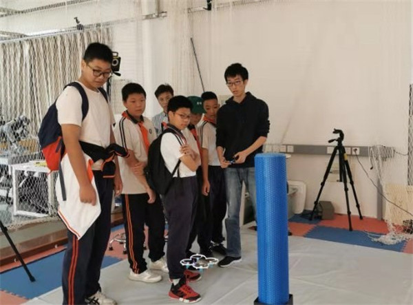 在無人機(jī)系統(tǒng)實(shí)驗(yàn)室,志愿者王趙映通過講解和播放視頻向孩子們介紹了無人機(jī)的種類及其在橋梁檢測、巡查等實(shí)際場景中的應(yīng)用,講解了無人機(jī)目前研究的熱點(diǎn)及難題。隨后,在志愿者李佳毅的指導(dǎo)下孩子們親自體驗(yàn)了如何操控?zé)o人機(jī)進(jìn)行飛行,激動興奮之情溢于言表。