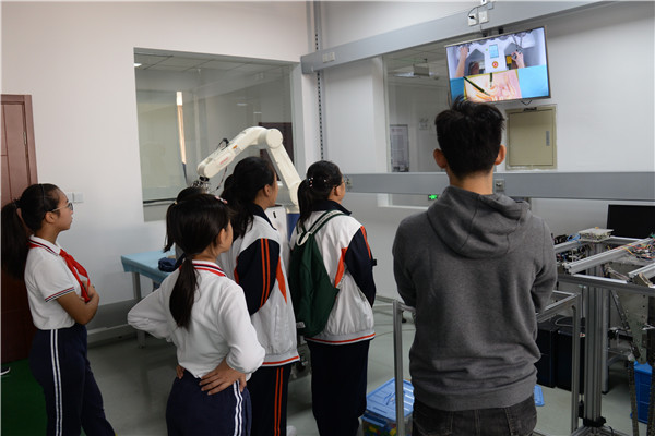 金秋十月是丹桂飄香的季節(jié),伴著濃郁的桂花香,10月20日,上海市閔行區(qū)七寶實(shí)驗(yàn)中學(xué)的初中生們來到交大校園,參加重點(diǎn)實(shí)驗(yàn)室參觀體驗(yàn)公益活動。活動以啟迪孩子們創(chuàng)新思維、激勵(lì)遠(yuǎn)大理想為目的,由機(jī)械動力學(xué)院機(jī)器人所研究生第一黨支部支部書記王志永負(fù)責(zé)組織,27位支部黨員及積極分子參與承辦。