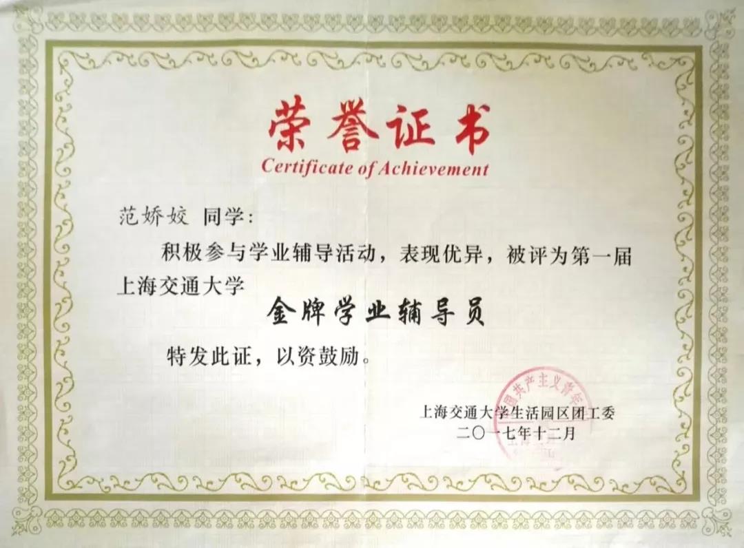 范嬌姣的求學(xué)之路并不是那么簡單。在人才濟(jì)濟(jì)的交大,她的成績起先并不占優(yōu),甚至在第一學(xué)期的期末還是班里的倒數(shù)。不甘于此的她,晨起誦讀夜用功、在圖書館中奮斗朝夕、自習(xí)室里的奮筆疾書成為了她的日常,寢室樓中與同學(xué)的深夜討論成為了她的習(xí)慣。三載光陰荏苒,她在求學(xué)道路上不斷進(jìn)步,榮獲國家獎學(xué)金、唐立新獎學(xué)金,被評為“2018年度校勵志典型人物”,成功實(shí)現(xiàn)逆襲。