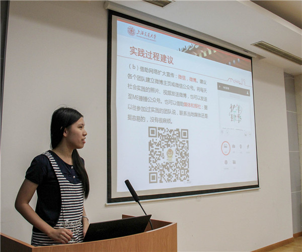 至社會實踐技能培訓(xùn)環(huán)節(jié),來自分團委的官芷凌和湯逸磊分別進行了新聞稿和影像記錄培訓(xùn)。官芷凌從她撰寫新聞稿的經(jīng)歷出發(fā),講述了撰寫新聞稿的規(guī)范及技巧。而湯逸磊講解了拍照的技法及注意事項,分享了自己的拍攝心得。他們見解獨到、語言幽默詼諧,現(xiàn)場氣氛歡快活躍。