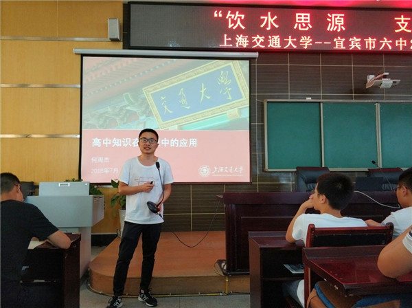 經(jīng)過三天的講座和交流,宜賓六中的同學(xué)們對上海交大有了更全面的認識,收獲了很多學(xué)習(xí)經(jīng)驗,對科技前沿的學(xué)科和領(lǐng)域產(chǎn)生了濃厚的興趣。交大支教團的同學(xué)也對宜賓六中有了深入的了解,對宜賓這座城市有了初步的認識,與當(dāng)?shù)貛熒⒘松詈竦挠颜x,也因為六中的這群人,愛上了宜賓這座城。此次暑期社會實踐活動取得了豐碩的成果。上海交通大學(xué)同宜賓六中淵源已久,在2018年高考中,宜賓六中也有學(xué)生成功錄取至上海交通大學(xué)。兩所學(xué)校也定將繼續(xù)大力加強“校校聯(lián)合”,共同攜手,砥礪前行!