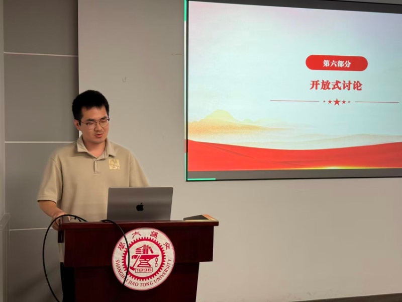 隨后,上海交大核能科學(xué)與核安全研究所研究生黨支部書記劉延以《抗日戰(zhàn)爭中的交大人》為題作專題分享,系統(tǒng)回顧了交通大學(xué)在抗戰(zhàn)時(shí)期的辦學(xué)歷史,緬懷了在救國圖存斗爭中涌現(xiàn)出的交大先烈,并深刻闡述了交大“飲水思源、愛國榮校”的校訓(xùn)精神在烽火歲月中的生動(dòng)實(shí)踐。劉延指出,這份精神不僅是交大歷史的重要底色,更是新時(shí)代交大學(xué)子矢志科研報(bào)國、勇?lián)鷷r(shí)代使命的不竭動(dòng)力。