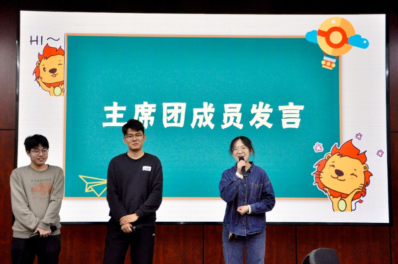 院團(tuán)委書記戴雨吟老師首先為本次大會(huì)致辭。她對(duì)團(tuán)委學(xué)生會(huì)許以衷心的祝愿,同時(shí)向團(tuán)委學(xué)生會(huì)的成員們提出三點(diǎn)期望,希望同學(xué)們能堅(jiān)定服務(wù)同學(xué)的初心,做全面發(fā)展的多面手,同時(shí)注重團(tuán)隊(duì)合作、加強(qiáng)隊(duì)伍建設(shè)。最后,她祝愿團(tuán)委學(xué)生會(huì)能夠永遠(yuǎn)年輕,越來(lái)越好。