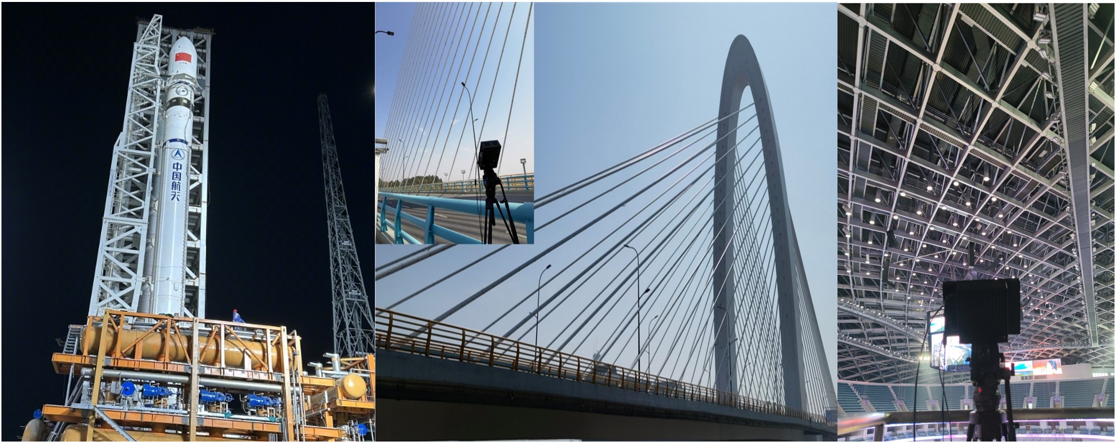 項目圍繞航空航天等國防裝備和橋梁建筑等大型工程全天候全場振動測量需求,針對極端環(huán)境超大尺度結構全局力學精密感測科學挑戰(zhàn),提出了大型結構全天候全場微波測振新思路與新路徑。項目在“大型結構全場振動及形變微波測量機理與技術”“結構全場高分辨、跨尺度、三維位移微波精密感測技術與方法”“復雜環(huán)境與工況測量誤差的溯源、分析與控制技術”方面取得創(chuàng)新性發(fā)明突破,研制了國際首套大型結構全場振動及形變微波測量儀器裝備,測量精度達到1μm量級,測量距離達150m,形成了具有完全自主知識產權的大型結構全天候全場微波測振技術與裝備。研究成果填補了微波全場振動測量技術空白,廣泛應用于航空航天、橋梁建筑、電力等領域重大裝備及大型結構的力學測試。
