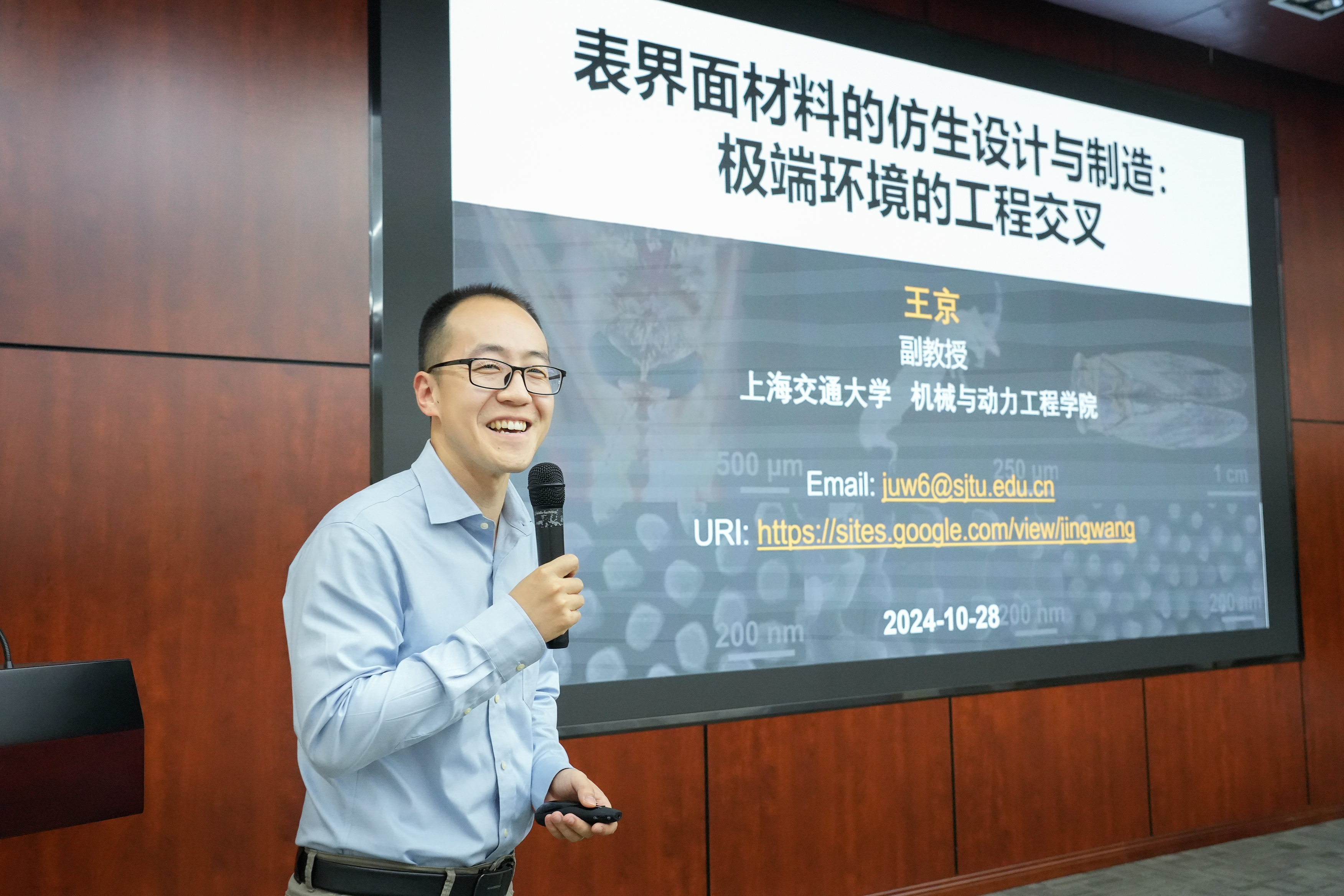 智能制造與信息工程研究所王京副教授以“表界面材料的仿生設(shè)計(jì)與制造:極端環(huán)境的工程交叉”為主題,講述了對(duì)于固體污染物粘附產(chǎn)生學(xué)術(shù)興趣的緣由,探討交流了表界面材料學(xué)科領(lǐng)域工程交叉的新方向和新方法。
