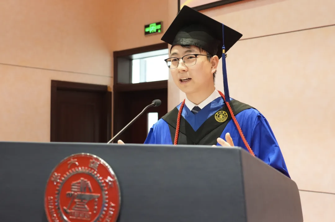 優(yōu)秀畢業(yè)生代表隋思哲分享在交大成長的幸運與挑戰(zhàn),鼓勵大家在新的人生篇章中砥礪前行,擁抱可能,無限進(jìn)步。