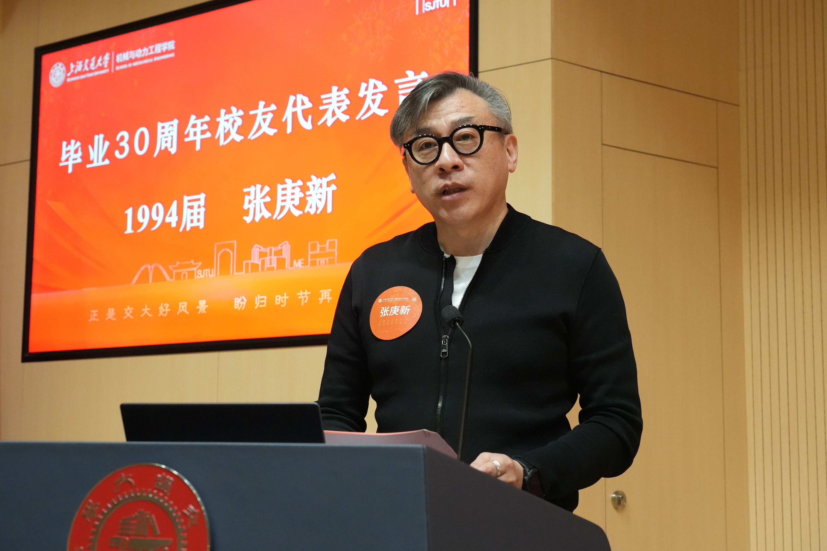 1994屆校友張庚新作為畢業(yè)30周年校友代表,分享了求學(xué)經(jīng)歷和職業(yè)發(fā)展,表達(dá)了對(duì)母校的感激之情。他認(rèn)為在母校的求學(xué)經(jīng)歷不僅學(xué)會(huì)了專業(yè)知識(shí),還培養(yǎng)了如何用智慧和勇氣探索未知的世界,讓自己學(xué)會(huì)了保持獨(dú)立思考、堅(jiān)定初心和信念。他希望校友們能將這份感恩之心轉(zhuǎn)化為前進(jìn)動(dòng)力,不斷追求卓越,為社會(huì)發(fā)展做出更大的貢獻(xiàn),同時(shí)祝愿學(xué)院再續(xù)華章、再創(chuàng)輝煌。