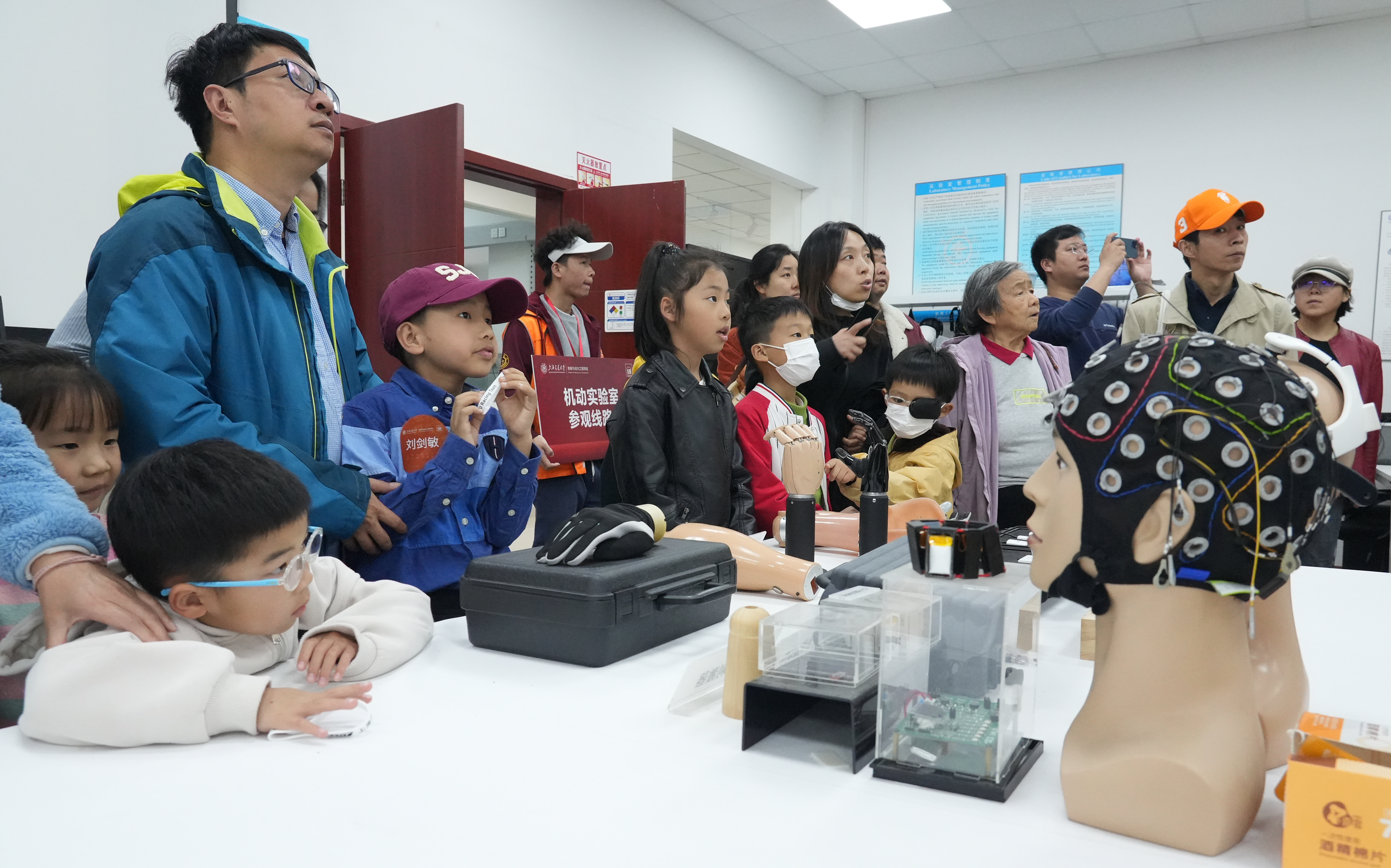 薪火相傳,攜愛歸家。學(xué)院特別舉辦“交二代”科技嘉年華活動(dòng),精心策劃并展示了多項(xiàng)科創(chuàng)成果,包括世界首款六足滑雪機(jī)器人和六足冰壺機(jī)器人、一體式再生燃料電池、太陽能驅(qū)動(dòng)的空氣取氫、生機(jī)電一體化智能系統(tǒng)技術(shù)、自主式機(jī)器人與無人系統(tǒng)技術(shù)、無人駕駛與車路協(xié)同技術(shù);還邀請(qǐng)了來自學(xué)生創(chuàng)新中心的明星項(xiàng)目,包括全國大學(xué)生機(jī)器人大賽RoboMaster機(jī)甲大師冠軍隊(duì)、中國第一支大學(xué)生方程式賽車隊(duì);組織了“自平衡車保齡球”、“麥輪車撞車”等互動(dòng)游戲。一系列充滿挑戰(zhàn)與樂趣的科技裝置和互動(dòng)游戲,向校友們展示了學(xué)院前沿的研究成果,激發(fā)了“交二代”們對(duì)科技創(chuàng)新的探索,活動(dòng)吸引了200余名“交二代”的熱情參與。