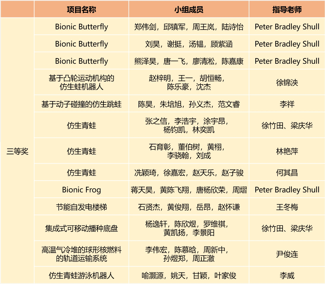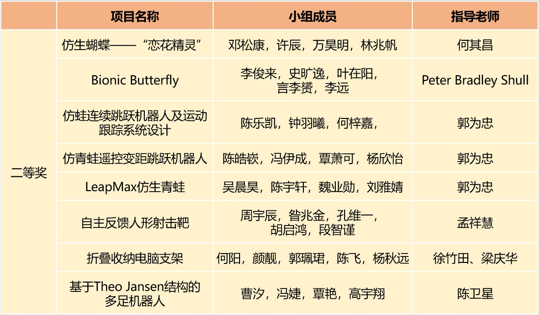 項目展上,學(xué)生們通過實物模型、展板、視頻等形式介紹項目作品的市場需求、設(shè)計方案、創(chuàng)新思路以及課程知識點應(yīng)用等內(nèi)容,并進行了作品的實操演示。本次挑戰(zhàn)賽項目是仿生蝴蝶和青蛙,賽場上進行了精彩的飛行和跳躍比賽。活動最終評選出一等獎3項、二等獎8項、三等獎13項、優(yōu)勝獎23項,以及最佳人氣獎12項。