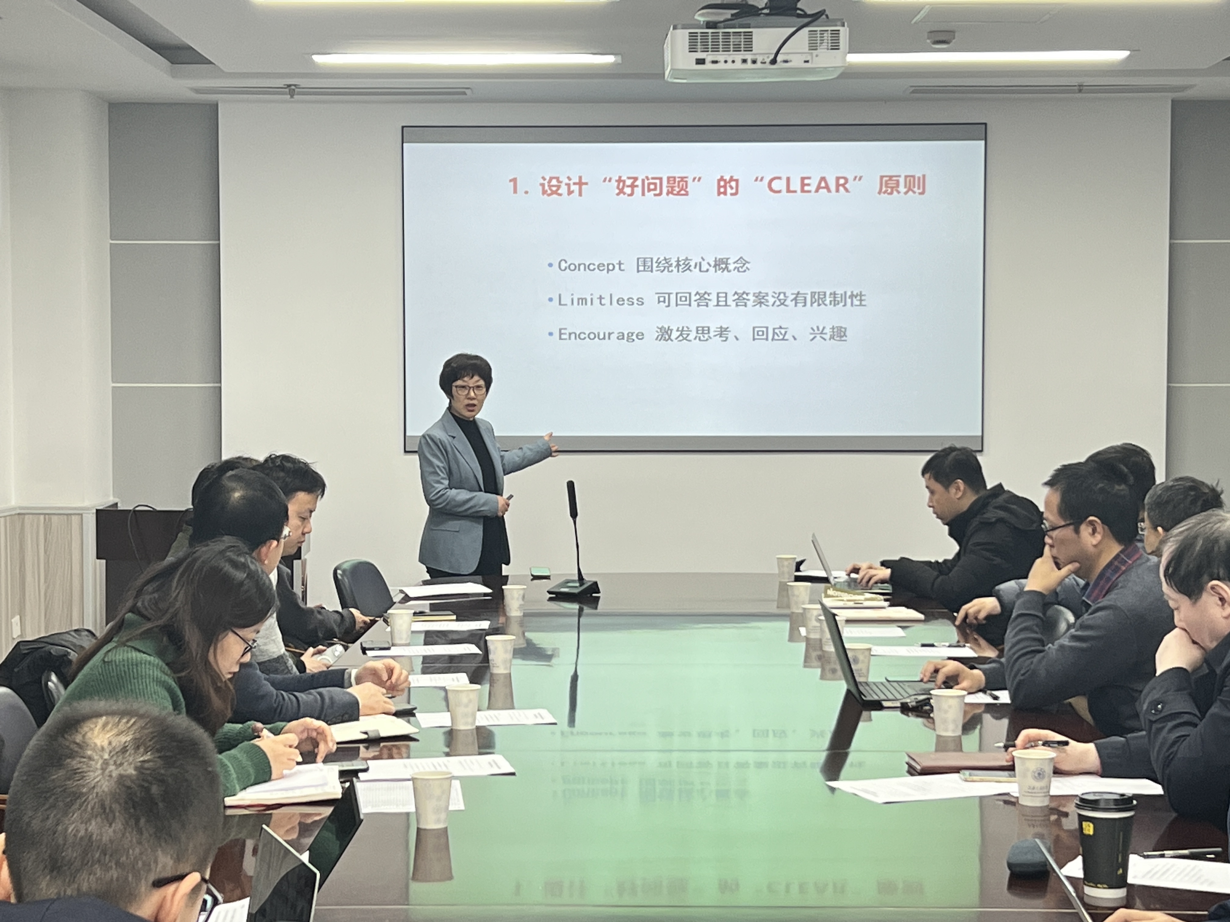 校教學發(fā)展中心副研究員王力娟做《如何問出好問題》主題培訓,圍繞設計“好問題”的“CLEAR”原則、認知層次理論、循環(huán)提問模型等方面,帶來了精彩報告。