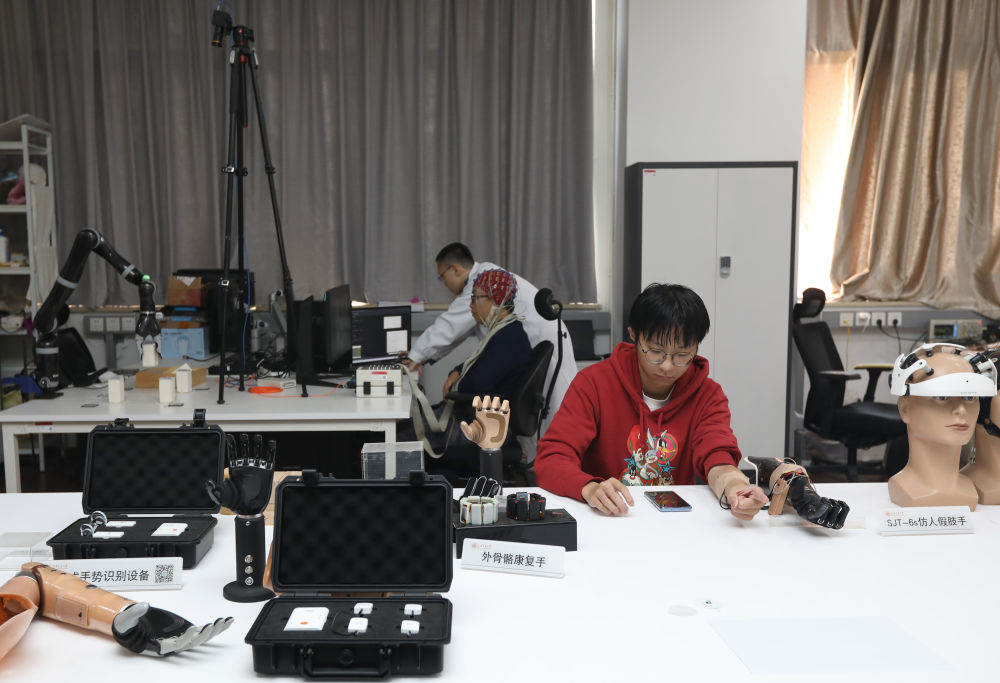 在上海交大機器人研究所的生機電實驗室,學生在進行研發(fā)工作(11月24日攝)