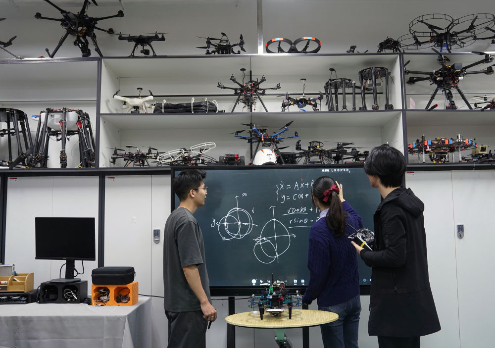 在上海交大機器人研究所的無人系統(tǒng)實驗室,學生在進行討論(11月24日攝)