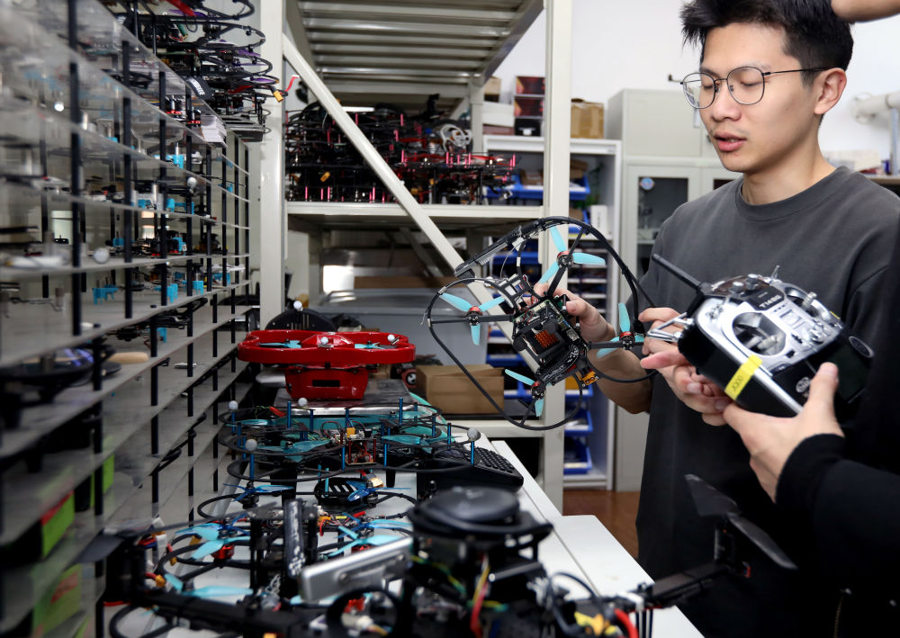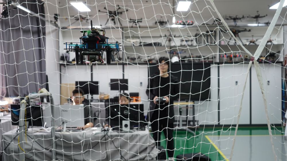 在上海交大機器人研究所的無人系統(tǒng)實驗室,學生在測試無人機性能(11月24日攝)