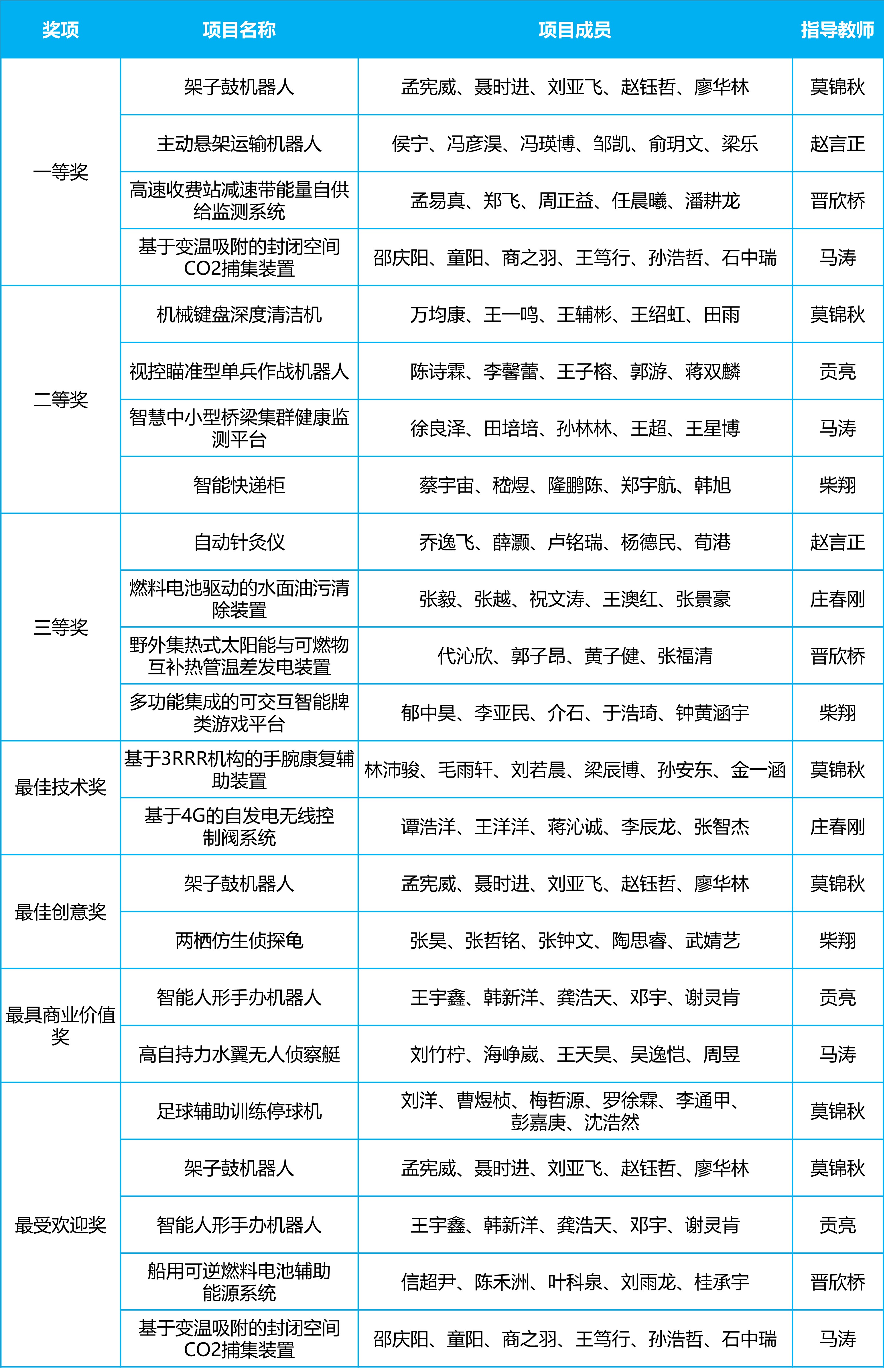 經(jīng)校內(nèi)外專家評審和研究生新生投票,評選出一等獎(jiǎng)4項(xiàng)、二等獎(jiǎng)4項(xiàng)、三等獎(jiǎng)4項(xiàng),最佳技術(shù)獎(jiǎng)2項(xiàng)、最佳創(chuàng)意獎(jiǎng)2項(xiàng)、最具商業(yè)價(jià)值獎(jiǎng)2項(xiàng)、最受歡迎獎(jiǎng)5項(xiàng)。