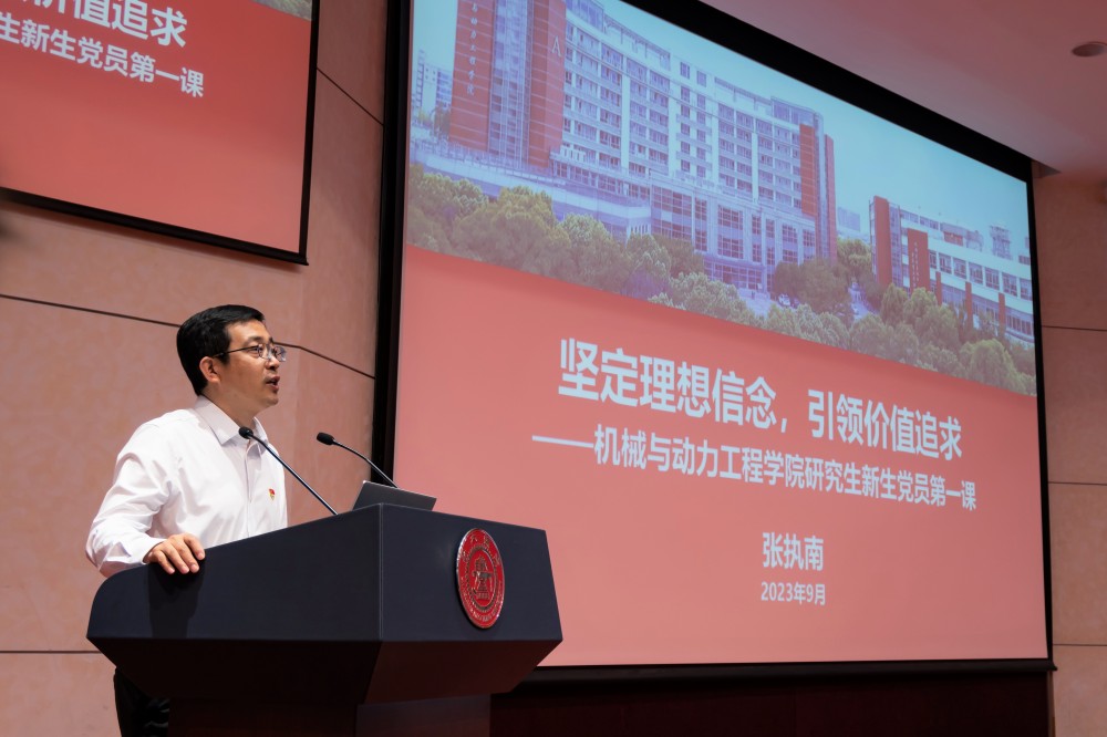 張執(zhí)南以“堅(jiān)定理想信念,引領(lǐng)價(jià)值追求”為主題,為新生黨員帶來第一堂黨課,通過分享自己在交大求學(xué)以及教學(xué)科研工作的經(jīng)歷,對新生黨員提出三點(diǎn)希望和要求。一是要堅(jiān)定理想信念,強(qiáng)化使命擔(dān)當(dāng)奉獻(xiàn)。他帶領(lǐng)新生黨員共同回顧學(xué)校、學(xué)院的紅色歷史和傳統(tǒng),通過分享導(dǎo)師謝友柏院士教書育人、嚴(yán)謹(jǐn)治學(xué)的故事以及優(yōu)秀校友的求學(xué)經(jīng)歷,強(qiáng)調(diào)知行合一的重要性,鼓勵(lì)大家養(yǎng)成踏實(shí)認(rèn)真的為人處事態(tài)度和嚴(yán)謹(jǐn)求實(shí)的科學(xué)研究精神,不忘家國情懷,秉持赤子之心。二是要錘煉過硬本領(lǐng),與國家同向同行。他結(jié)合兩位博士生的求學(xué)經(jīng)歷,希望大家抓住機(jī)遇,打下扎實(shí)的專業(yè)基礎(chǔ),把青春融入黨和人民的事業(yè)中。三是要強(qiáng)化服務(wù)意識(shí),發(fā)揮先鋒示范引領(lǐng)。他號(hào)召新生黨員向優(yōu)秀黨員學(xué)習(xí),不忘初心,發(fā)揮模范帶頭作用,同時(shí)結(jié)合學(xué)院人才培養(yǎng)要求,強(qiáng)調(diào)要運(yùn)用知識(shí)、方法、實(shí)踐支撐復(fù)合型思維和能力的培養(yǎng),希望大家成為卓越的工程創(chuàng)新人才。