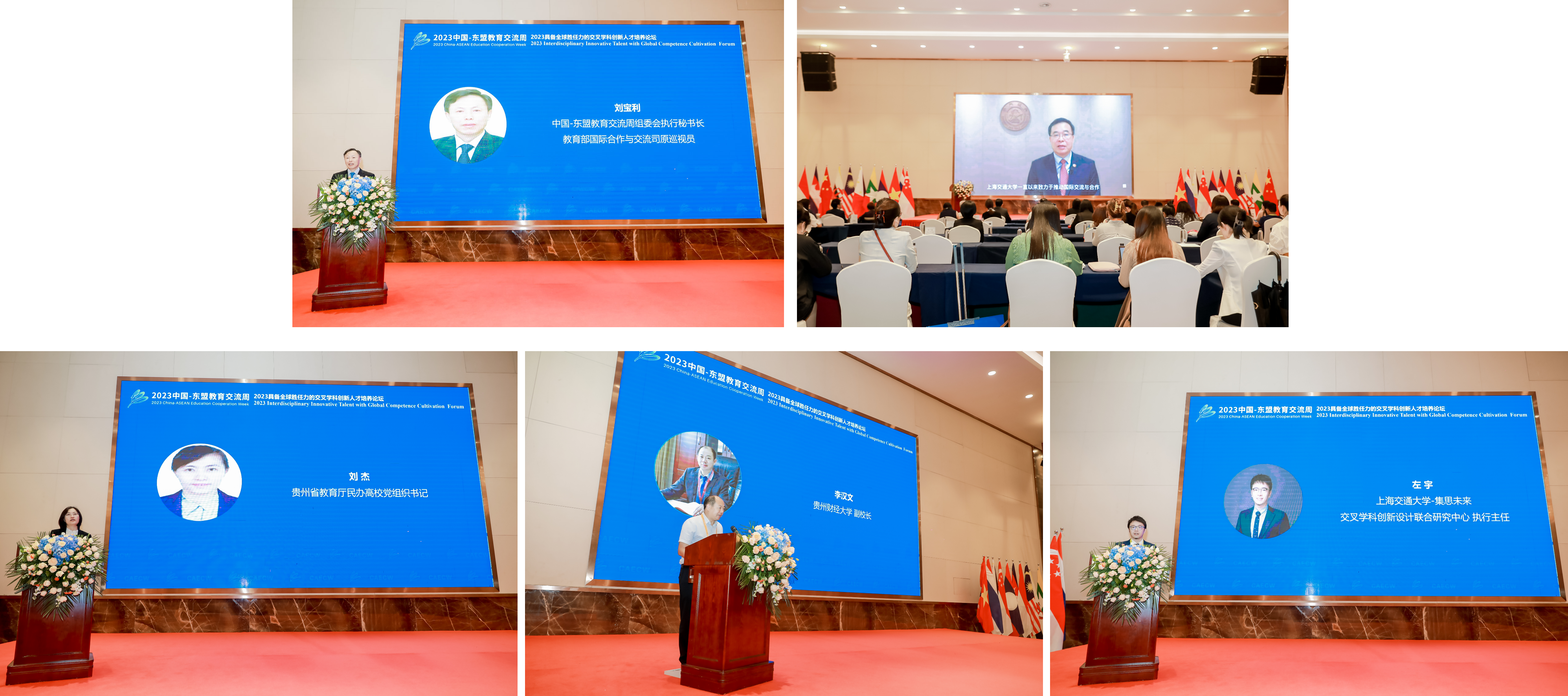 中國(guó)-東盟教育交流周組委會(huì)執(zhí)行秘書長(zhǎng)劉寶利、上海交通大學(xué)副校長(zhǎng)奚立峰、貴州省教育廳民辦高校黨組織書記劉杰、貴州財(cái)經(jīng)大學(xué)副校長(zhǎng)李漢文、集思未來聯(lián)合創(chuàng)始人左宇分別致開幕辭。