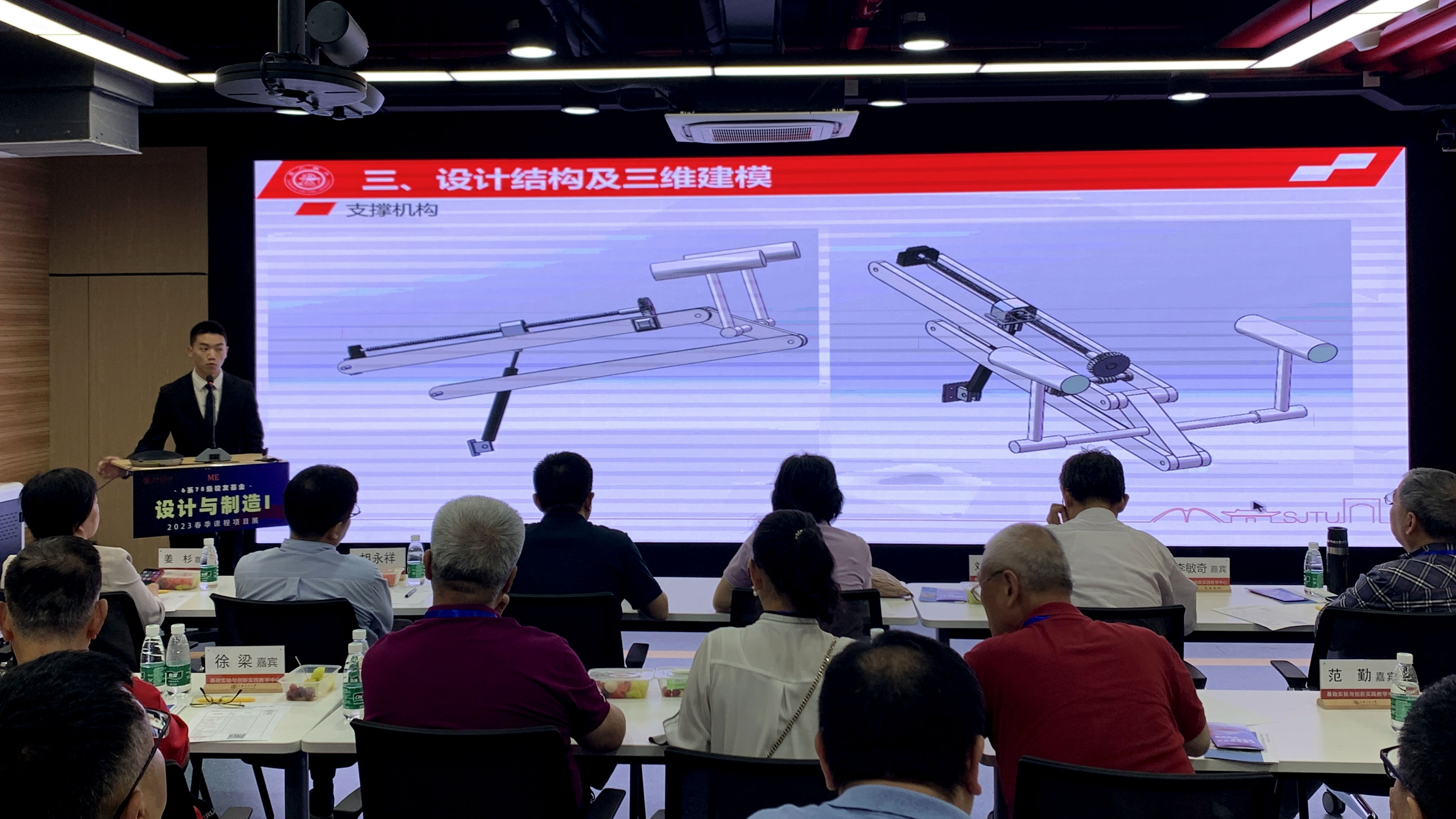 6月18日,機(jī)械與動力工程學(xué)院舉辦2023年度《設(shè)計與制造I》課程項目展,本次活動采用線上直播、線下同步進(jìn)行的形式,共有101組項目參展。上海交通大學(xué)副教務(wù)長吳靜怡教授,教育部工程圖學(xué)課程教學(xué)指導(dǎo)分委員會主任、浙江大學(xué)陸國棟教授,副主任、國家級虛擬教研室負(fù)責(zé)人、中國石油大學(xué)劉衍聰教授,副主任、清華大學(xué)田凌教授,秘書長、浙江大學(xué)費少梅教授,委員、國家級虛擬教研室負(fù)責(zé)人、天津大學(xué)姜杉教授,寧夏大學(xué)機(jī)械學(xué)院院長張波教授,6系78級校友代表、學(xué)院黨委副書記胡永祥教授等參加了活動。開幕式由課程負(fù)責(zé)人蔣丹教授主持。