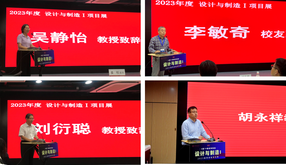 吳靜怡教授回顧了學(xué)院項目式教學(xué)的發(fā)展歷程,強(qiáng)調(diào)了項目展改革的宗旨是提升學(xué)生的綜合能力。劉衍聰教授指出項目展為學(xué)生們提供了實踐鍛煉和展示才華的機(jī)會,希望大家充分發(fā)揮優(yōu)勢,取得優(yōu)異成績,期待學(xué)院項目展能夠為國內(nèi)高校本科設(shè)計制造類課程的建設(shè),提供可復(fù)制可借鑒的經(jīng)驗。校友代表李敏奇表示學(xué)生課程項目作品豐富、亮點突出,希望大家將課程項目實踐中形成的迎難而上、積極樂觀的人生態(tài)度繼續(xù)延續(xù)到未來的學(xué)習(xí)生活中。胡永祥教授致閉幕詞,祝賀同學(xué)們圓滿完成本學(xué)期的學(xué)習(xí)和具有挑戰(zhàn)性的任務(wù),感謝課題組老師們?yōu)轫椖渴浇虒W(xué)付出的努力,以及各位嘉賓的蒞臨和指導(dǎo)表示感謝,勉勵學(xué)生再接再厲,未來的學(xué)習(xí)中不斷精進(jìn)專業(yè)、反復(fù)實踐、收獲成長。