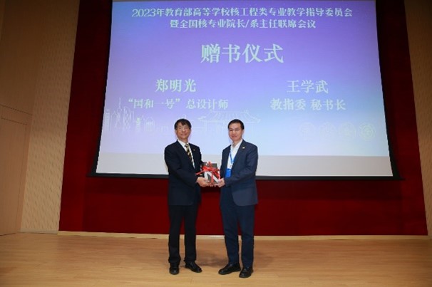 鄭明光做“國家科技重大專項‘國和一號’的創(chuàng)新與展望”大會報告,介紹了“國和一號”的發(fā)展歷程,對核工程人才培養(yǎng)提出了期望。鄭明光還向教指委及參會人員捐贈了圖書——《大型先進非能動壓水堆CAP1400》,該書取材于我國科技重大專項“大型壓水堆(CAP1400)”的科研和工程實踐,系統(tǒng)介紹了CAP1400的研發(fā)過程和具體設計內容,同時論述了CAP1400的安全性與經濟性、繼承性和創(chuàng)新性以及先進性與成熟性等。