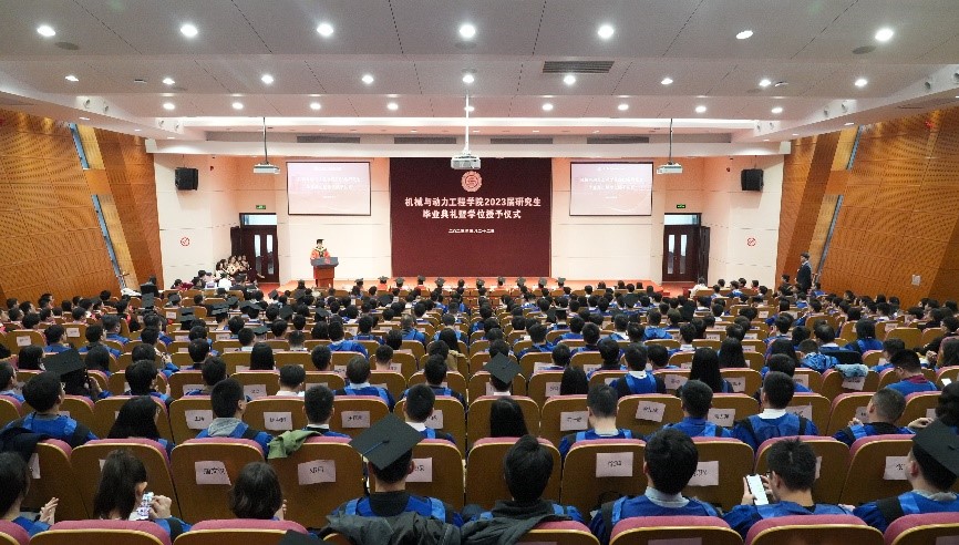 畢業(yè)生全體起立,許下錚錚誓言:“我將謹(jǐn)記‘飲水思源,愛國榮校’之校訓(xùn),恒德惟實,精勤不倦,強國興業(yè),砥礪前行,傳機動精神,展交大氣魄,以傳承文明、探求真理為己任,為振興中華、造福人類而奮斗終身!”機械與動力工程學(xué)院2023屆研究生畢業(yè)典禮暨學(xué)位授予儀式在校歌中圓滿落下帷幕。學(xué)院畢業(yè)生們在“制造強國,實業(yè)興邦”的時代浪潮中奮楫揚帆、逐夢前行,利用專業(yè)所學(xué)為實現(xiàn)國家富強、民族振興而接續(xù)奮斗!
