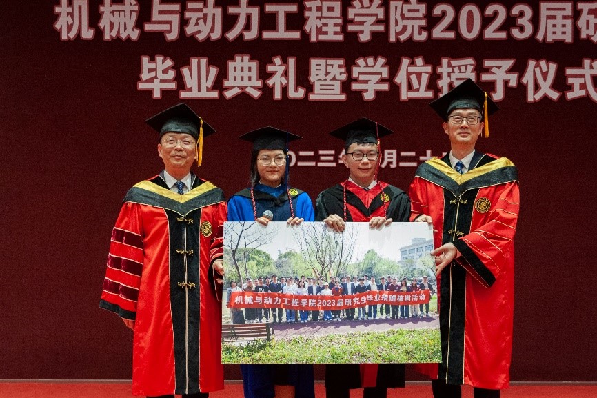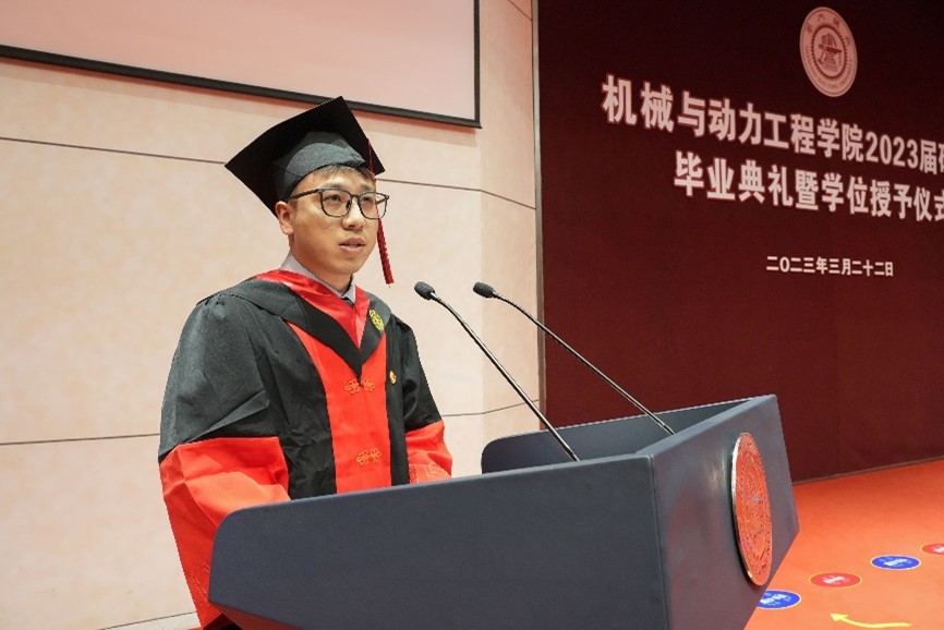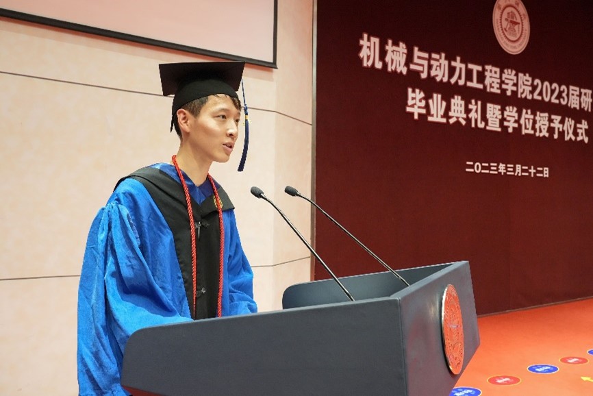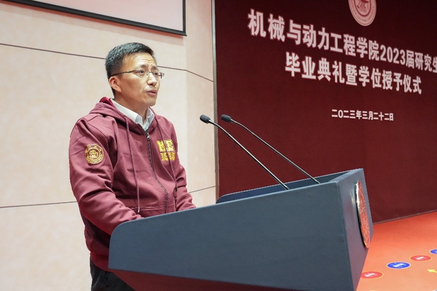 李玉陽宣讀了《2023屆市、校級優(yōu)秀畢業(yè)生名單》《機械與動力工程學(xué)院2023屆優(yōu)秀碩士論文名單》,杜朝輝、林立濤為市優(yōu)秀畢業(yè)生代表、優(yōu)秀碩士論文獲得者代表頒獎。