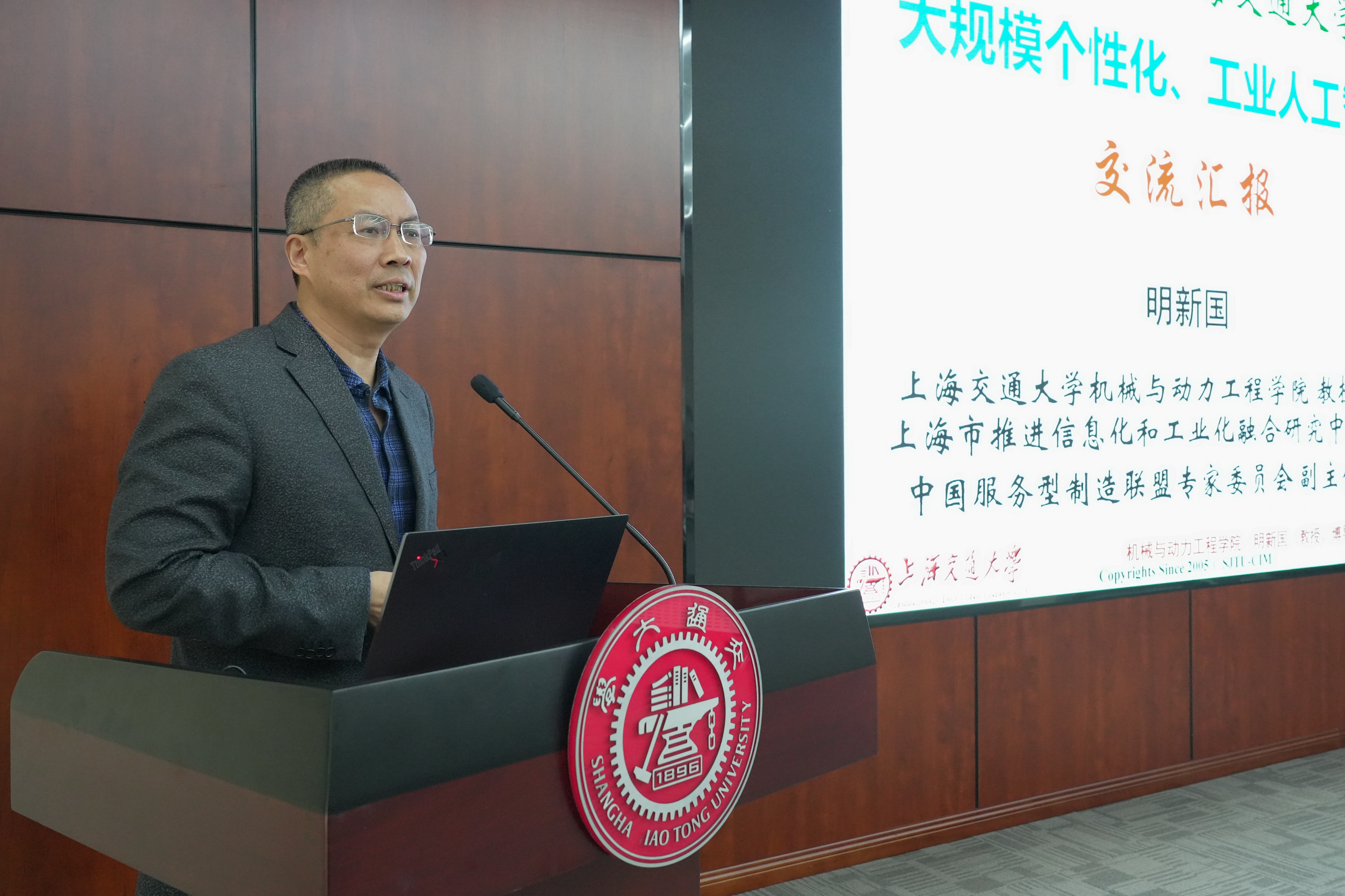 許文平、杜朝輝分別介紹了學(xué)校和學(xué)院的科研創(chuàng)新成果,明新國(guó)介紹了課題組產(chǎn)業(yè)數(shù)智化方向,包括大規(guī)模個(gè)性化、工業(yè)人工智能的最新研究進(jìn)展。
