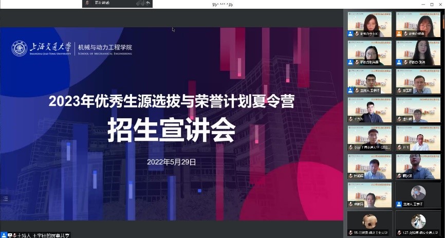 機械與動力工程學院2023年研究生優(yōu)秀生源選拔與致遠榮譽計劃夏令營活動已于5月20日正式啟動報名,招生微信推送閱讀量達7565人次,獲得了高度關(guān)注。本次招生宣講會分為騰訊會議主會場和直播同步進行,主會場邀請了來自60余所高校的300余名學子參會,直播平臺吸引了200余人次觀看。近年來,為適應(yīng)常態(tài)化疫情防控要求,學院結(jié)合以往線下實地宣講和“互聯(lián)網(wǎng)+”新技術(shù)的優(yōu)勢,主動搭建線上宣講互動平臺,連續(xù)3年與廣大學子“云上赴約”,不讓疫情阻斷每一位英才“擇良機動,砥礪遠行”的夢想。歡迎廣大學子積極報考上海交大機械與動力工程學院。