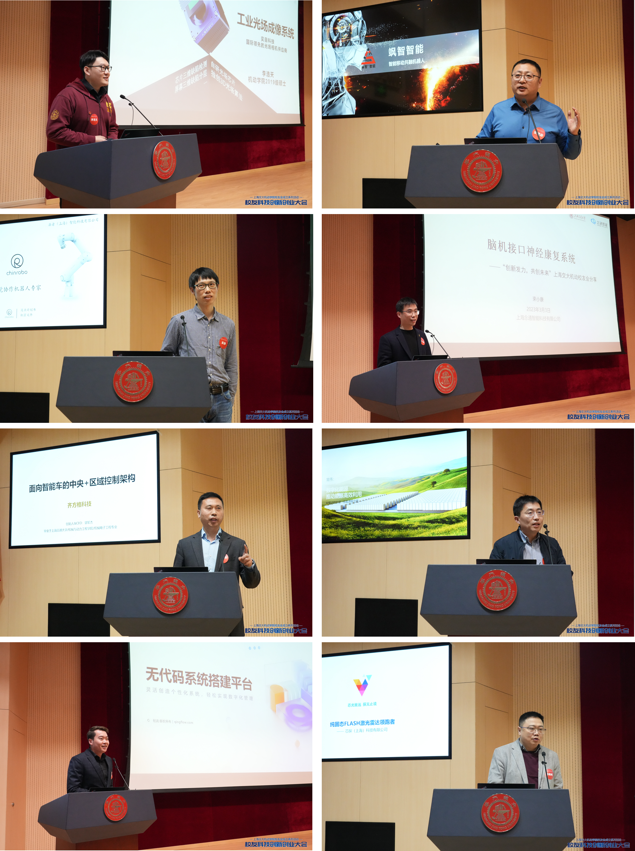 校友企業(yè)路演環(huán)節(jié),2019屆碩士校友、奕目科技聯(lián)合創(chuàng)始人、CEO李浩天,2012屆博士校友、颯智智能創(chuàng)始人、CEO張建政,2013屆碩士校友、溱者智能研發(fā)總監(jiān)吳靜,2019屆碩博校友、念通醫(yī)療創(chuàng)始人、CEO束小康,2005屆本科校友、2008屆碩士校友、齊方格科技創(chuàng)始人郭軍杰,1999屆本科校友、2002屆碩士校友、樂駕智慧能源聯(lián)合創(chuàng)始人、CTO常偉,2014屆本科校友、易校信息科技董事、運營副總裁蔣益西,1993屆本科校友、芯探科技聯(lián)合創(chuàng)始人鄭曉峰,分別進(jìn)行了主題路演分享,并與現(xiàn)場校友、嘉賓進(jìn)行了積極的互動交流。