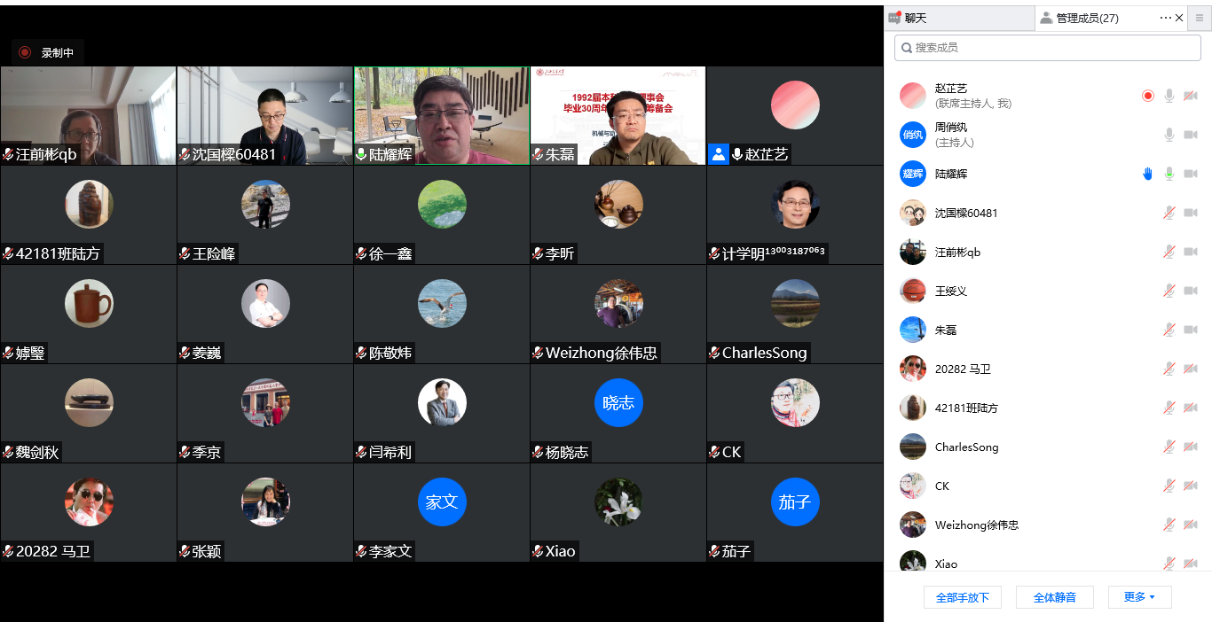 4月24日,1992屆本科班級理事會畢業(yè)30周年紀念活動籌備會于線上成功舉辦,20余名班級理事云相聚,為畢業(yè)30周年的團聚獻言獻策。