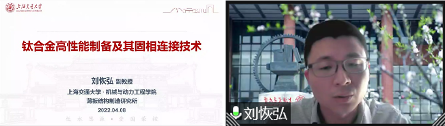 李永兵教授分享了撰寫論文的心得體會,從“撰寫有范式、評審有標(biāo)準(zhǔn)、提升有規(guī)律”三方面介紹了提高科研論文水平的途徑,希望大家嚴(yán)格遵守學(xué)術(shù)道德規(guī)范,砥礪第一等品行。劉恢弘副教授作“鈦合金高性能制備及其固相連接技術(shù)”學(xué)術(shù)報告,闡述了鈦合金和鈦合金應(yīng)用技術(shù)的研究背景、最新研究進(jìn)展和成果。