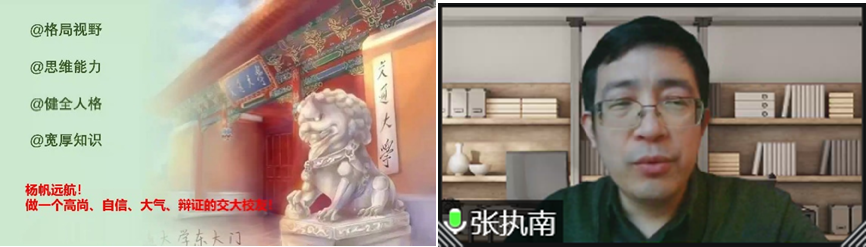 張執(zhí)南分享了抗疫以來的感悟,希望學(xué)子們在疫情期間保持樂觀的心態(tài),學(xué)會系統(tǒng)和辯證地看待問題,保持自律,充分利用好時間,在“危機(jī)”中尋找“契機(jī)”,努力提升自己,成為高尚、自信、大氣、辯證的交大人。